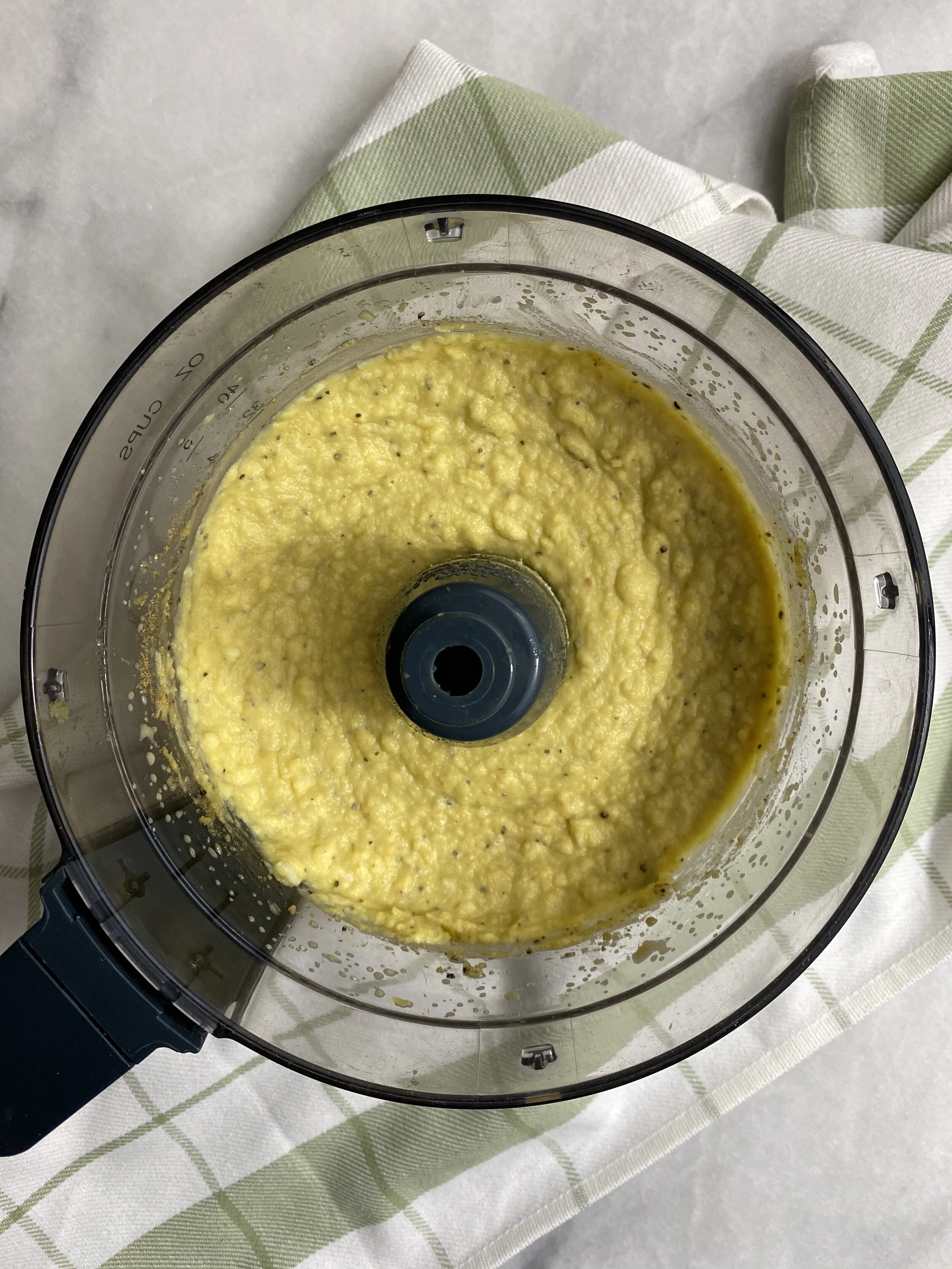 - Scoop out the flesh from the acorn squash and discard the skin. Place the flesh into a food processor along with olive oil, garlic, salt, pepper, cumin and tahini. Blend on high for 2 minutes until smooth consistency. Taste to ensure it doesn't need more seasoning.