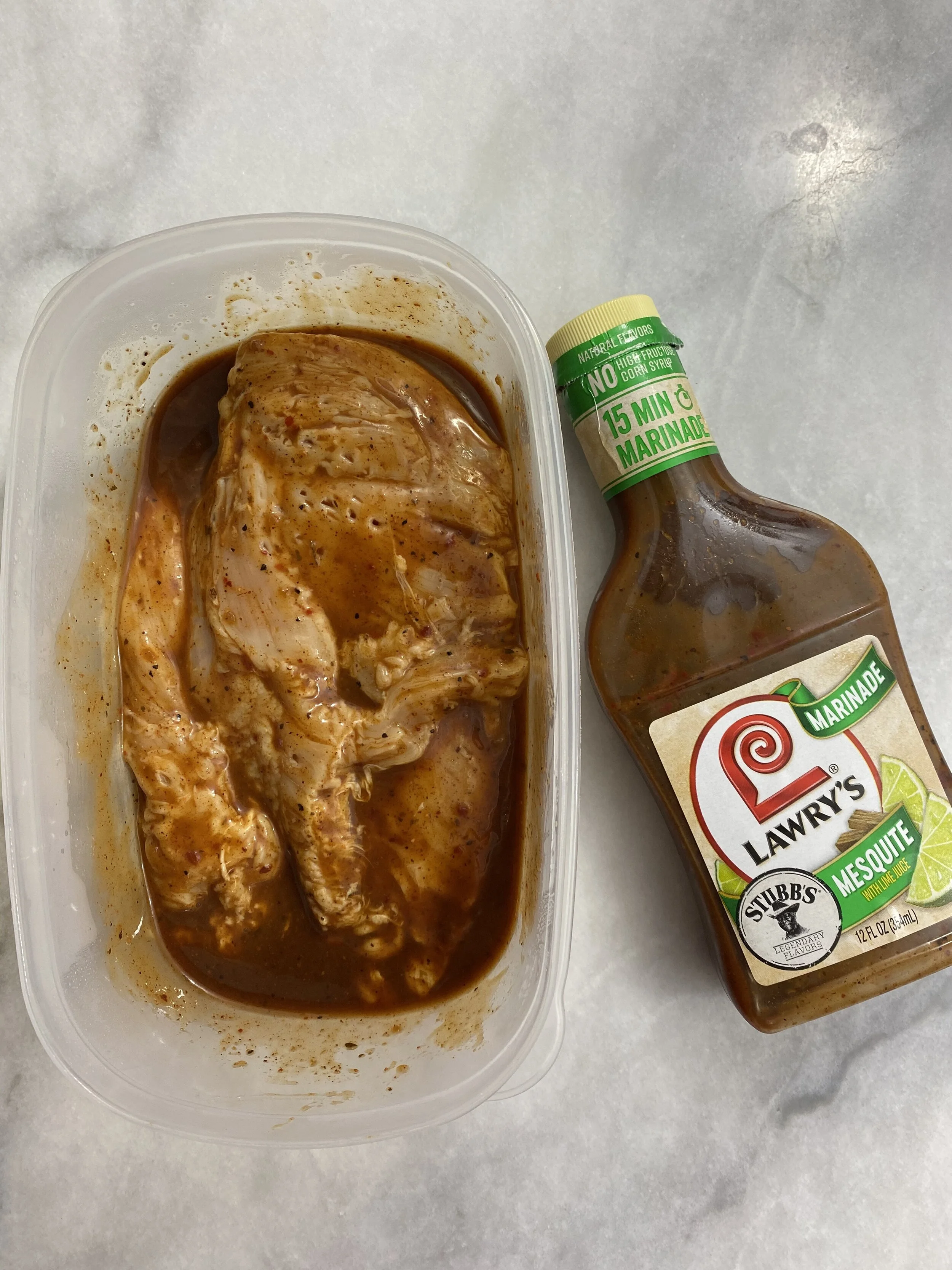 I love kale, chicken and farro so I decided to make a salad with these ingredients. First off, I marinated two chicken breasts with Lawry’s Mesquite with lime marinade for 30 minutes.