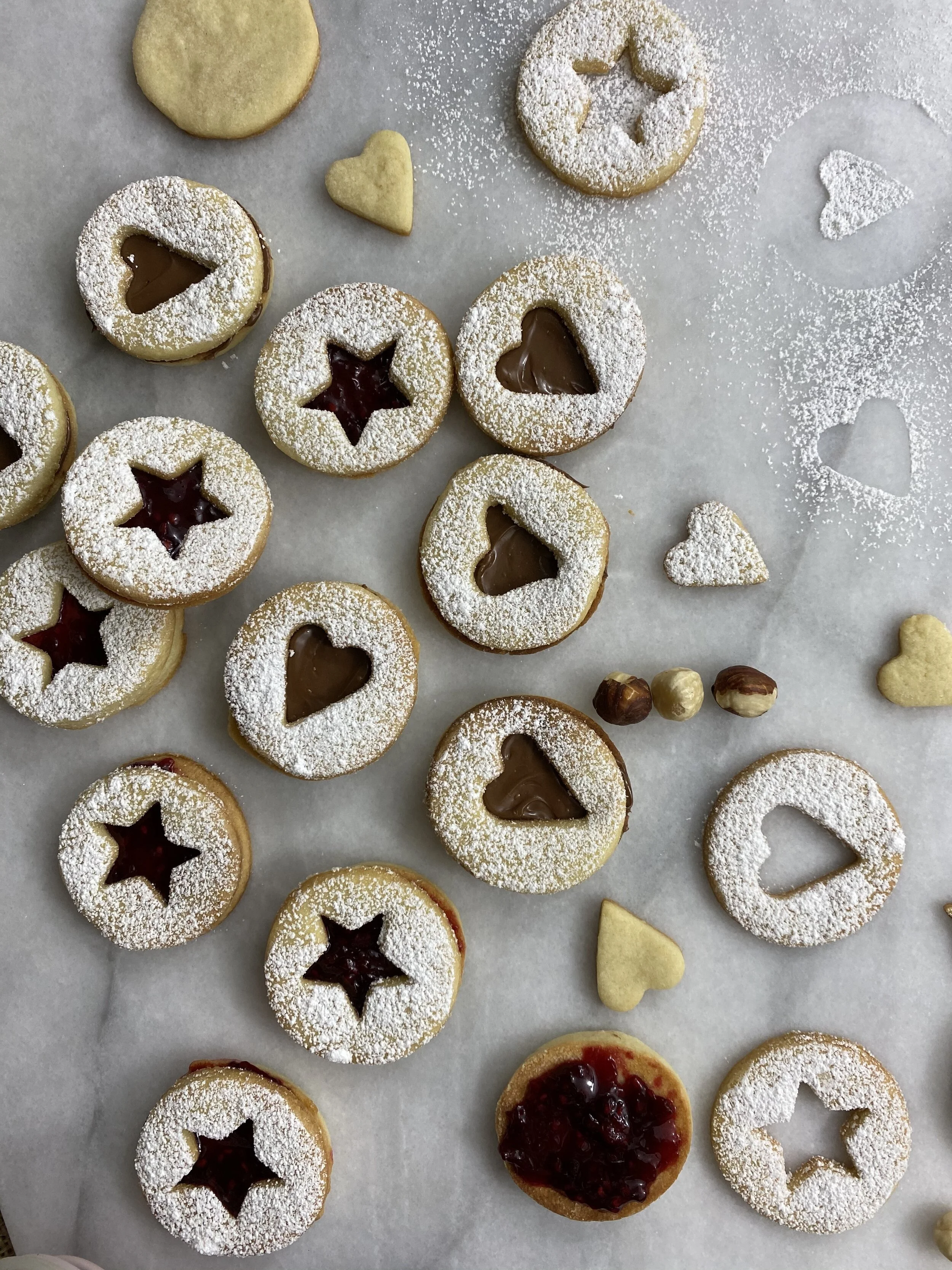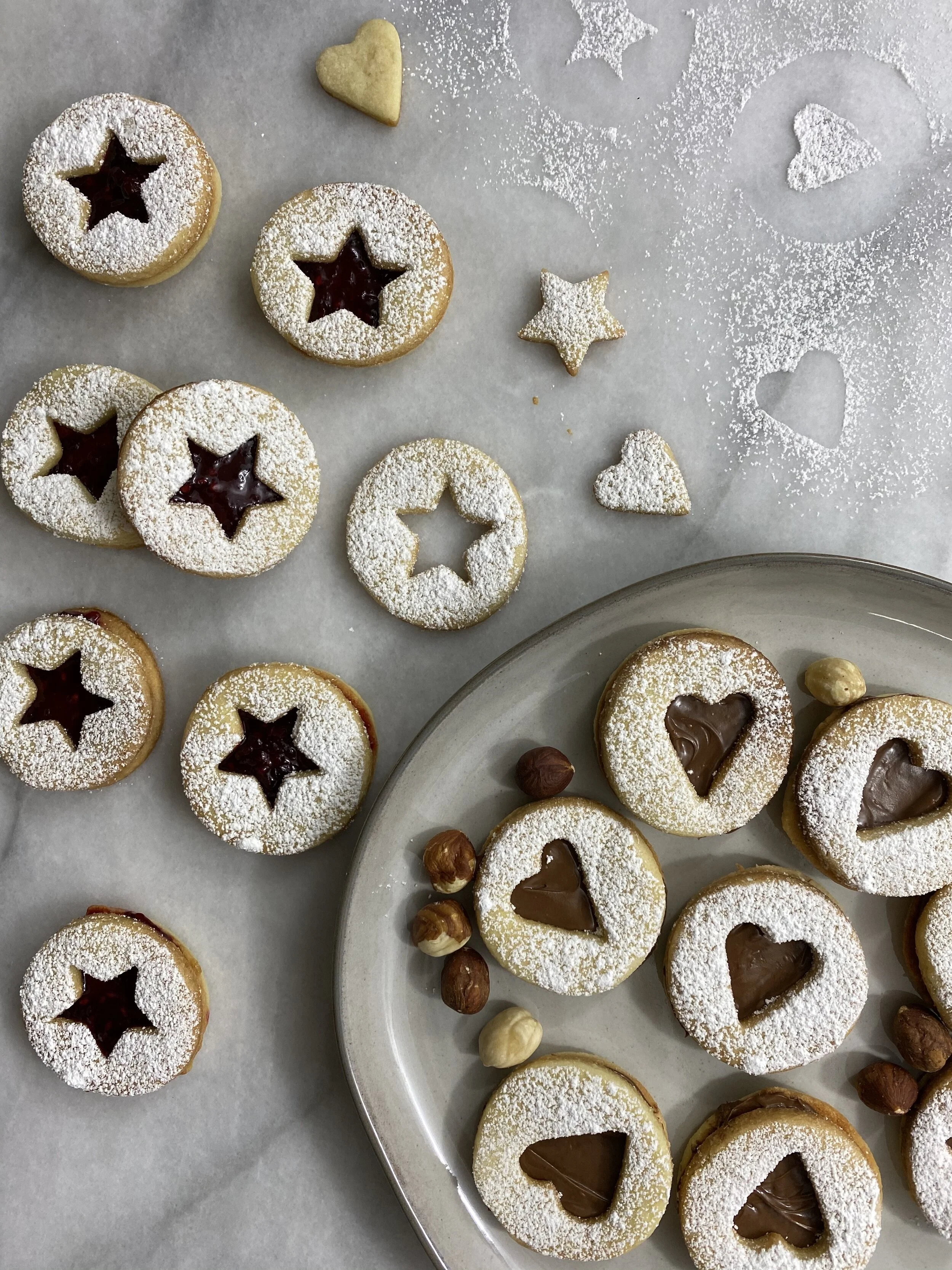 LINZER COOKIES PrintWith ImageWithout ImageLinzer CookiesYield: makes 24 cookiesAuthor: Yasmine WahabIngredients3/4 cup unsalted butter, softened/room temp1/2 cup granulated sugar1 large egg1 tsp pure vanilla extract1 cup and 2 tablespoons all-purpose flour1 cup almond flour1/4 tsp salt1/4 cup my homemade blackberry & raspberry jam (see previous post)1/4 cup hazelnut spread2 tbsp powdered sugar, for dustingInstructionsPreheat the oven to 350F. Combine both almond and all-purpose flour along with salt and whisk together.In a stand mixer with the paddle attachment, beat together the butter and sugar until fluffy and plate yellow in color (approx. 4 mins). Then combine the egg and vanilla extract and on slow speed slowly pour in the flour mixture until just incorporated. Do not over mix.Place the dough on a well-floured surface and create a disk shape and cover all sides with plastic wrap. Place in the fridge for 15 minutes. Place parchment paper on a baking sheet.After 15 minutes, roll out the dough on a well floured surface about ¼ inch in thickness. With a round 1 inch cookie cutter, cut out as many rounds as possible and place them on a baking sheet. Cut out the center with a smaller cookie cutter shape of your choice for the remaining half then place into the freezer for 15 minutes. Place into the oven for only 10 minutes and place on a cooling rack to cool completely. Once cooled, place the cookies with the cut center on a plate and dust with powdered sugar and set aside. Spread some jam and hazelnut spread on the round cookies and carefully sandwich them with the top cookies.Similar RecipesCHERRY ALMOND BISCOTTIPERSIAN TEA COOKIESBLUEBERRY MUFFINS WITH BROWN SUGAR CRUMBLEDid you make this recipe?Tag @whisknwhip on instagram and hashtag it #recipesbyyas DessertsYasmine WahabAugust 14, 2020 Facebook0 Pinterest0 0 Likes