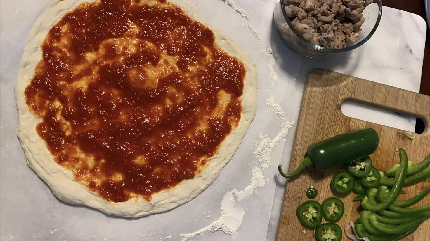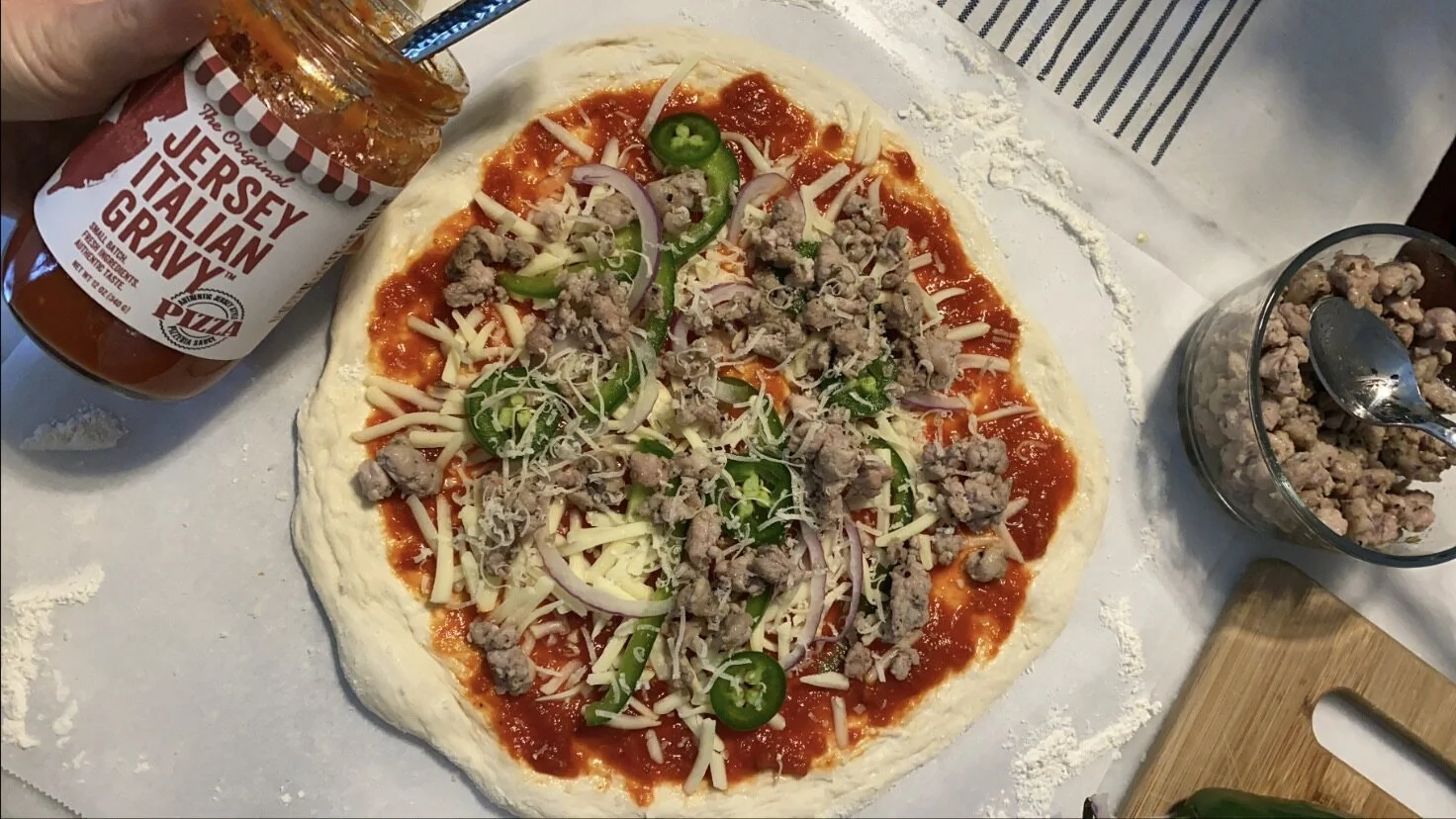 Pizza is probably one of the greatest comfort foods of all time. Whether you’re a Chicago deep dish person, a New York style pizza lover, or have a big heart for Italian pizza, you’re bound to find your favorite pie on almost every corner. But what about those days where you look through the fridge and see everything that would make an amazing pizza? That’s what happened here! With a sourdough starter always fed, and a husband who can’t eat enough pizza, we decided to make homemade pizza and it was DELICIOUS! We got the sourdough pizza dough recipe from Alexandra Cooks blog. Her step by step process was so easy to follow and the crust was light, airy and omg uh-mazing! And, as for the sauce, I would recommend only recommend Jersey Italian Gravy’s marinara sauce. It is next level good with so much deep flavor. I always have some extra sauce on the side to dunk my pizza into! Winning more :)